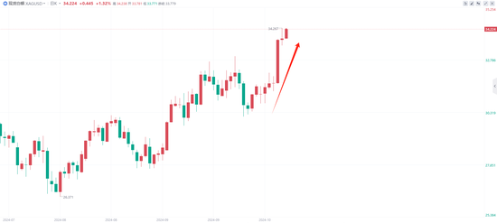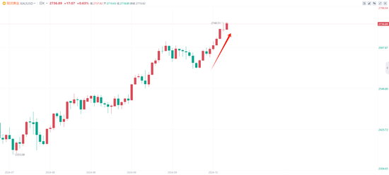 从商品行情来看,10月6日以来,现货黄金强势上涨,突破2700美元/盎司重要关口,涨幅超3%,续创历史新高。