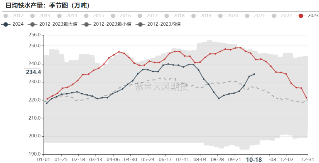 铁水 本周钢联公布247样本铁水产量234.36万吨,环比+1.28万吨,10月日均铁水231.8万吨。