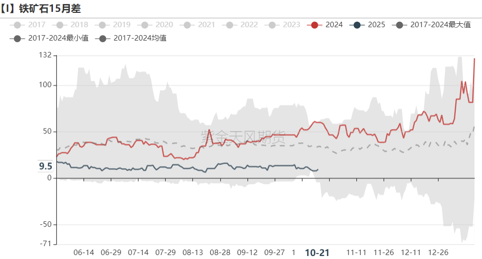 现货 铁矿现货成交量下行,远期货成交量上行,01合约基差率0.7%左右,基差下行,基差率下行。