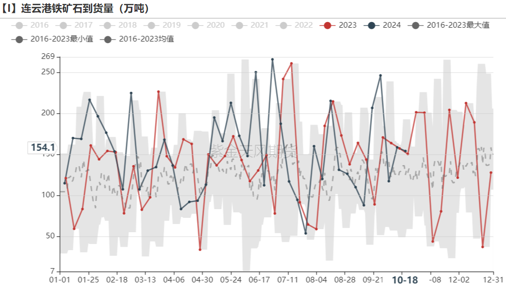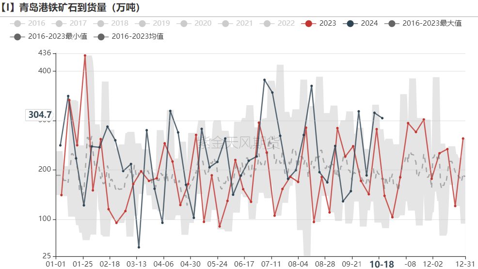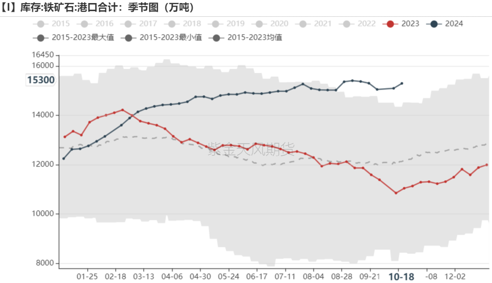 周度评述 供应端澳洲出现计划外检修,发运下降;巴西降水升高,发运小幅回落;非主流地区南非因港口检修发运下滑明显。我国到港总量在上周大幅回升后出现下滑,供应端处宽松状态。需求端受政策不及预期影响,成材利润出现下滑,但目前仍有盈利,247日均铁水+1.28万吨至234.36万吨,10月钢厂检修计划看产量仍有增量,但增幅减弱,月均铁水或达233万吨。库存端,钢厂厂内进口矿库存环比基本持平,45港库存环比累库191万吨,压港量下降,总量仍维持高库存状态。供应端宽松状态未变,铁矿需求端在钢厂盈利及铁水复产下仍有增量;成材去库格局未改,后期关注终端需求对高铁水的承接力度。目前基本面对价格影响力度较弱,重点关注政策面消息。观点维持震荡。