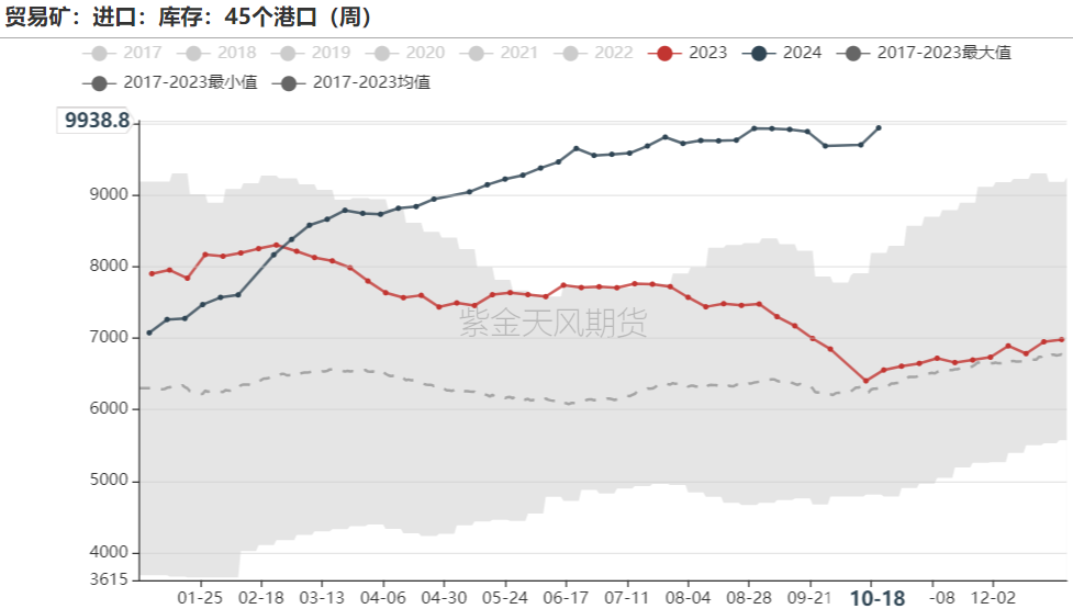 港口:45港库存环比增191万吨,贸易矿占比65%,环比上升